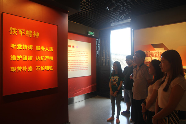 为纪念中国人民抗日战争暨世界反法西斯战争胜利70周年,新四军纪念馆承办了《浴血奋战 英雄盐城——新四军抗战大型专题展》 ,8月28日下午,中心组织全体党员干部和青年员工前往新四军重建军部旧址参观。该主题展分为“抗战爆发”、“铁流东进”、“浴火重生”、“迎接反攻”、“夺取胜利”五个部分,通过大量图片、图表、实物生动展示了新四军领导华中军民坚持抗战的辉煌历史,充分反映盐城人民在抗战中表现出的英勇无畏精神。通过参观,中心党员干部和青年员工深刻体会到今天的幸福生活来之不易,进一步激发了同志们的爱国热情,坚定和增强了民族自信心和责任感,牢记历史、缅怀先烈、珍爱和平、开创未来,将爱国的情怀和弘扬铁军精神融入到城管亮广工作之中。(市亮广中心党支部)