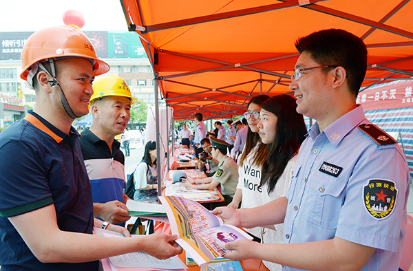 6月16日上午,市政府安委会在市区中茵海华广场组织开展全国第15个、江苏第23个“安全生产月”宣传咨询活动,市城管局积极组织人员参与,通过升放气球标语、制作宣传展板、发放宣传手册等形式,现场向市民宣传城市户外广告安全等方面法律法规和安全知识普及。