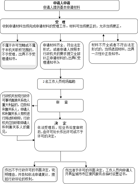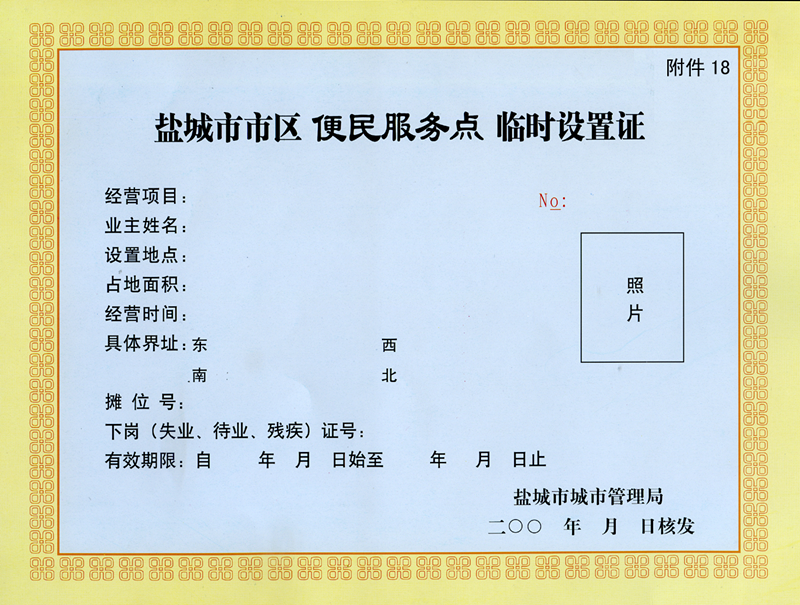 6 | 发证 | 《盐城市市区便民服务点临时设置证》 | 一份内部存档一份给行政相对人 |