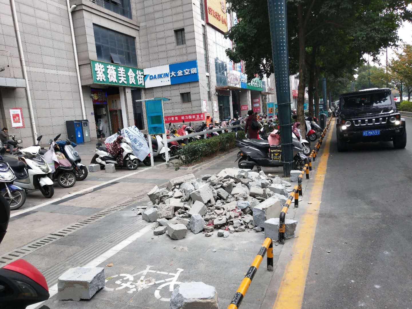 11月2日上午,二大队行政中心中队在日常巡查中发现人民路紫薇美食街门前堆放着一处建筑垃圾。该处垃圾主要是内部装修产生的砂石,堆放在人行道上,尘土飞扬,不但影响市容,还妨碍市民出行。