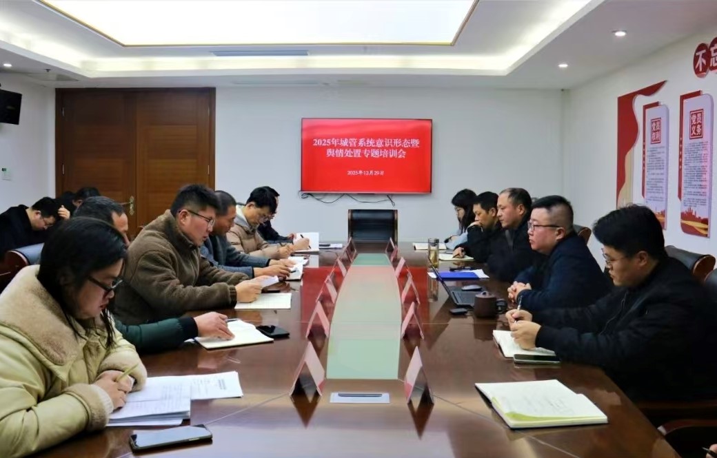 为深入贯彻落实党中央和省、市、县委关于意识形态工作的决策部署,进一步强化城管系统意识形态工作责任,提高党员干部舆情处置和风险防范能力,12月29日下午,县城管局举办2025年城管系统意识形态暨舆情处置专题培训会。局分管领导主持会议并讲话,局属各单位分管负责人、办公室主任及机关各科室负责人参加培训。