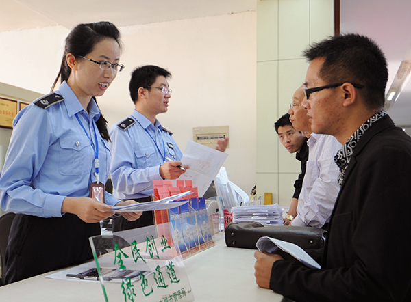 2月7日上午,外面天气寒冷,市政务服务管理办公大厅内已经来了很多前来咨询、办理业务的市民。在一楼A区城管局的窗口处,记者见到了正在给办件人处理事情的工作人员戴静。