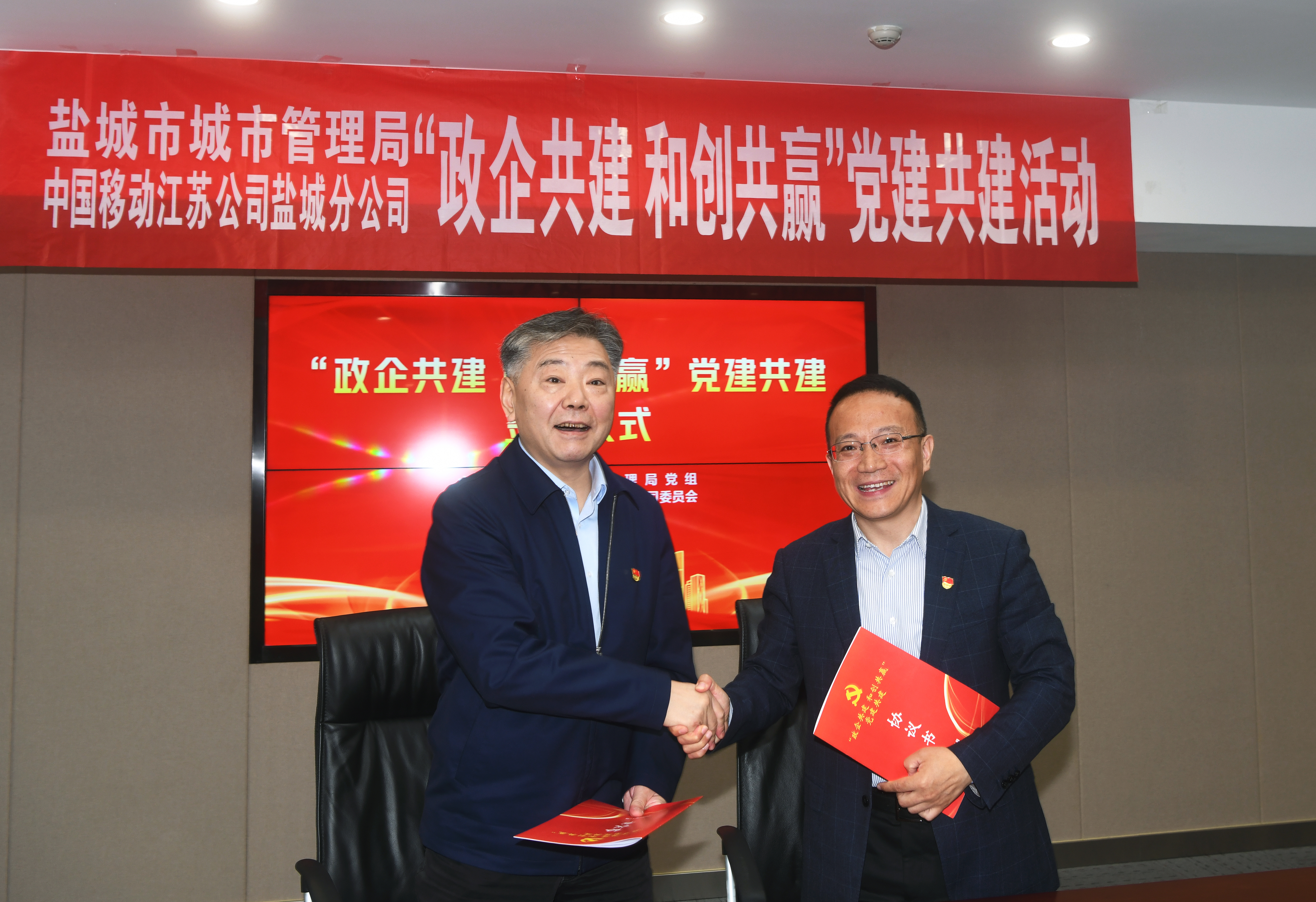 当日,市城管局、盐城移动还共同签订了“政企共建,和创共赢”党建共建协议,根据协议,双方将在党建工作、业务发展、为民服务等方面实现资源共享、优势互补,共同推进“智慧城管”“智慧环卫”建设。