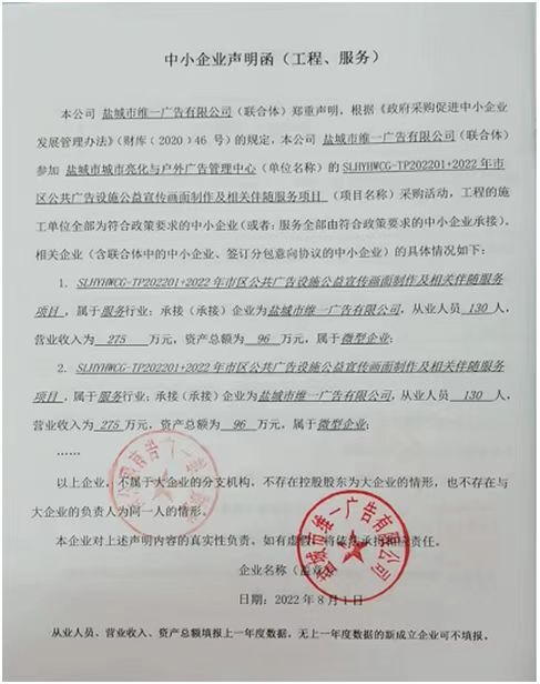 供应商名称:盐城市维一广告有限公司