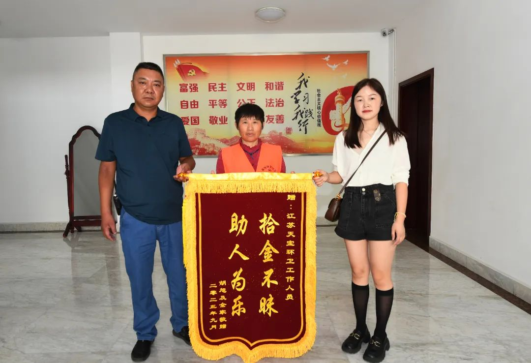 “真的没想到还能找回来,太感谢了!”9月11日上午,市民周女士将一面印有“拾金不昧 助人为乐”的锦旗送到市环卫处,表达对环卫工人金立勤拾金不昧的感激。