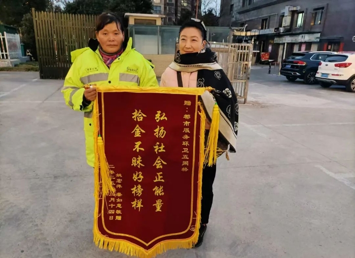 方寸之间彰显职业品格。蔡青松在八营路巡回保洁时捡到黑色钱包一只,随即汇报给值班组长王万花。钱包内有现金1100元,6张银行卡以及一家四口的身份证。组长根据钱包里的名片信息,辗转联系到失主刘女士。刘女士特意送来“拾金不昧 品德高尚”的锦旗表示感谢。蔡青松表示,“这是我应该做的,谁丢了这么重要的东西都会着急,能及时还回去我就安心了”。鹿鸣路环卫工人夏冬梅巡回保洁时捡到一个电脑包,里面有许多证件,考虑到失主肯定很着急,立即上报班长,班长通过包内名片上的信息联系到失主,约好地点,当天下午成功归还。