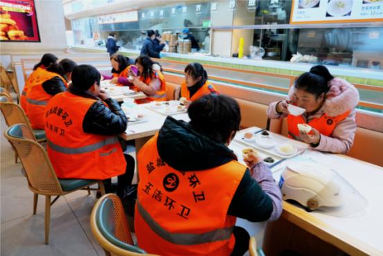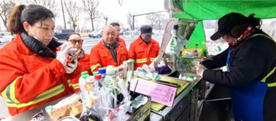 环卫工人朱霞说:“天都比较冷,我们自己带的早饭都冷掉了,现在天天早上吃的热乎乎的,蛮好的。”环卫工人刘兆萍说:“我觉得特别满意,特别便捷。”免费早餐得到了环卫工人的高度认可和好评,并通过朋友圈为这项民生实事点赞。