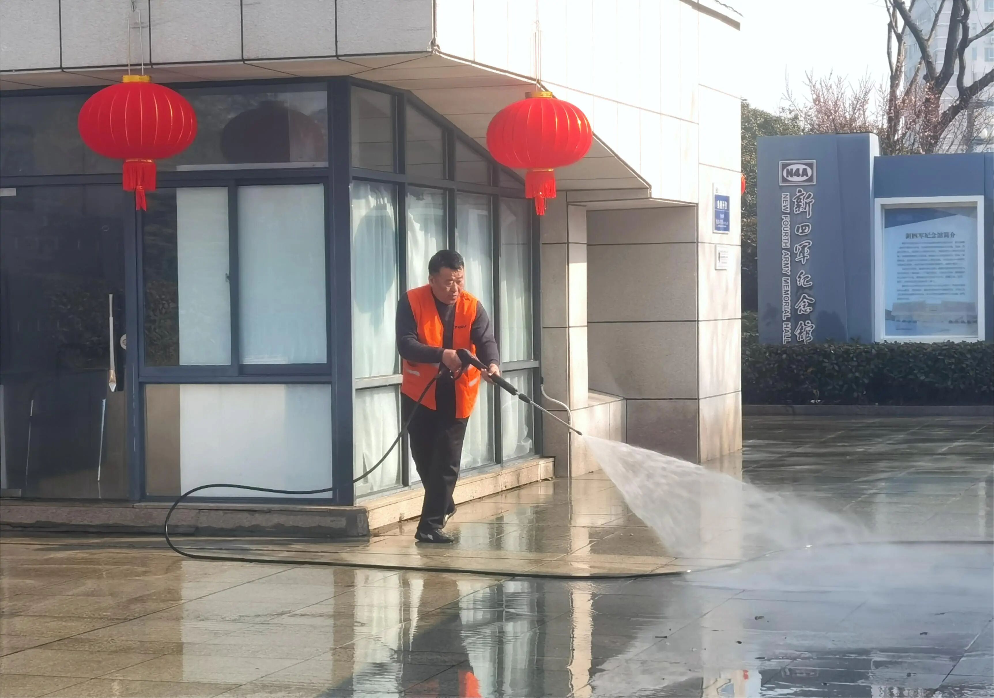 早上9点半,新四军纪念馆广场前,趁着节前天气晴好,冲洗车正在进行路面喷洒作业,环卫工人在用高压水枪清理路面污垢。“我们将积极做好春节期间值班值守,按照精细化保洁标准,加密机扫保洁频次,强化道路巡回保洁,对城市主次干道、非机动车道开展全面冲洗作业,全力擦亮‘盐城真干净’金字招牌,保障市民和游客度过一个干净整洁、欢乐祥和的新春佳节。”市环卫处毓龙环卫所所长王萍说。